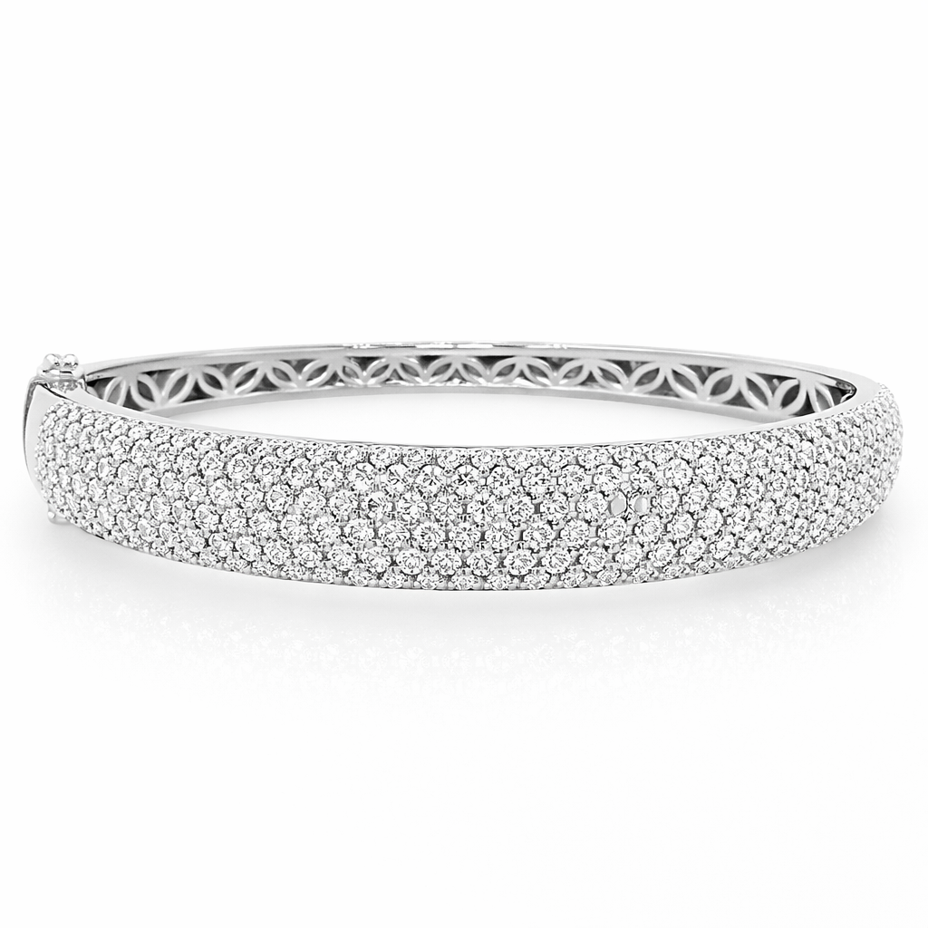 14K WHITE GOLD 4CTW DIAMOND PAVE SET BANGLE BRACELET