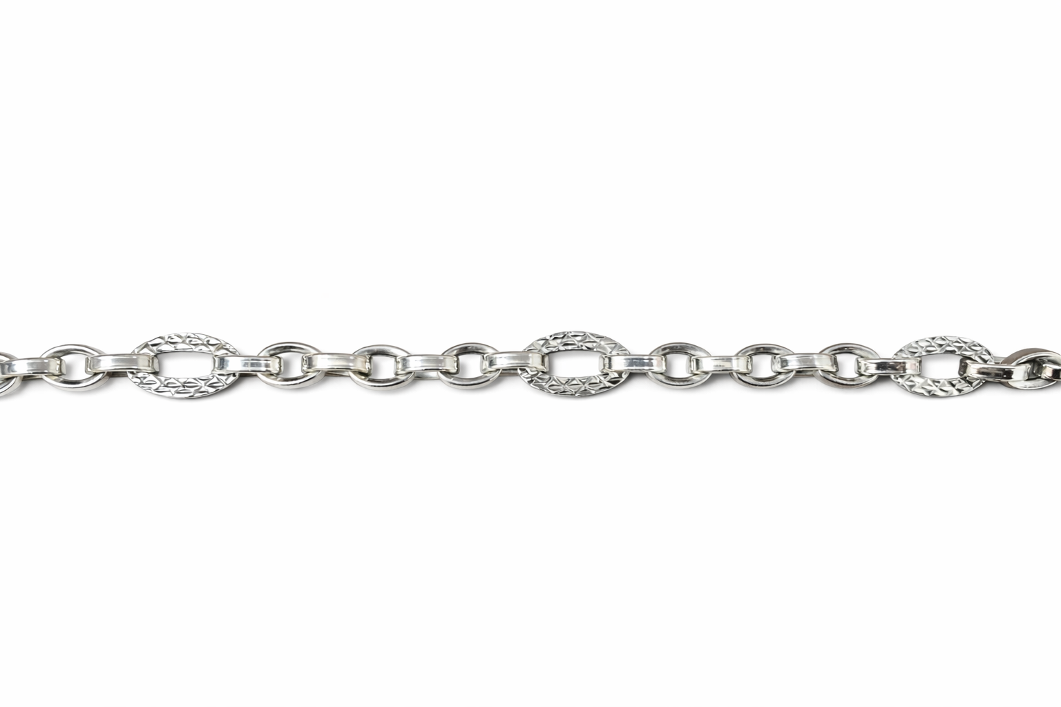 14K WHITE GOLD 8" OVAL DIAMOND CUT HIGH POLISH LINKS WITH SUNBURST RUBY HEART CHARM HANGING BRACELET