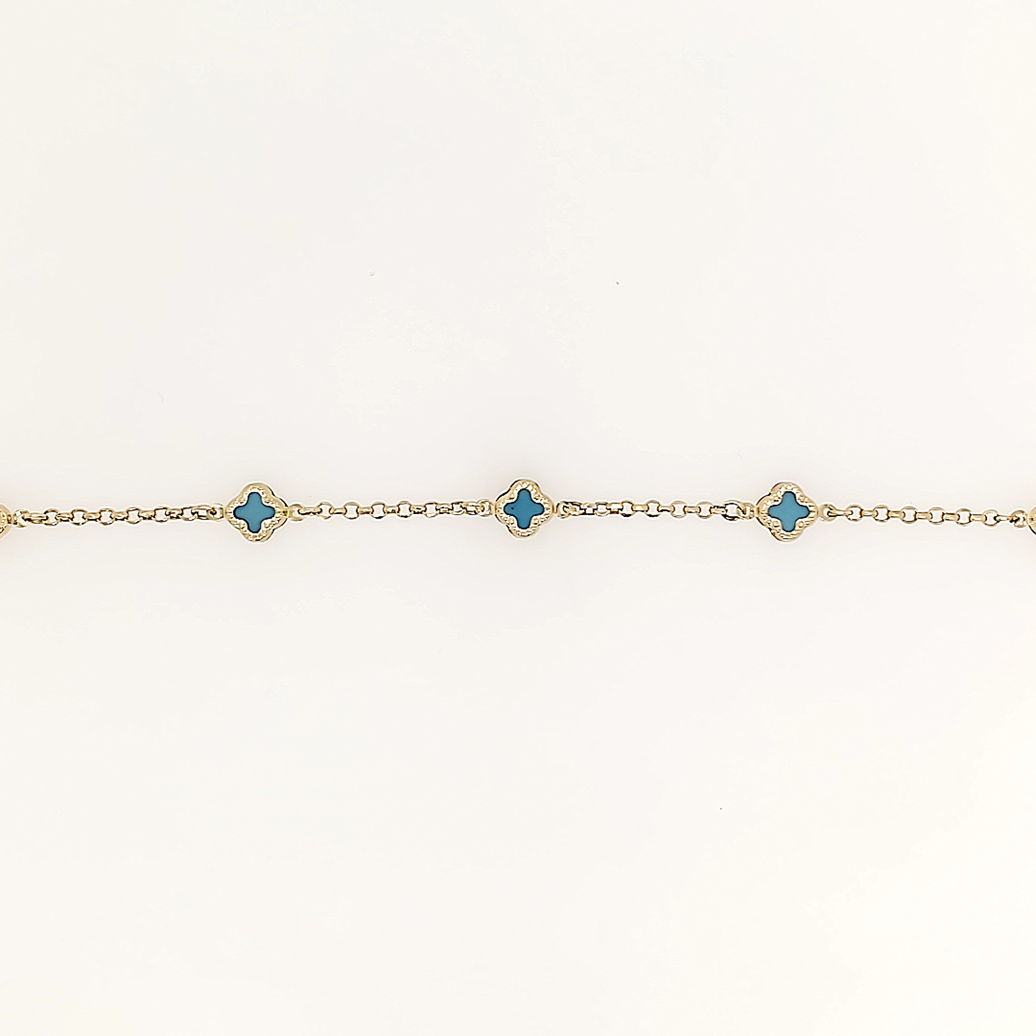 14K YELLOW GOLD 5 PETTITE TURQUOISE CLOVER BRACELET