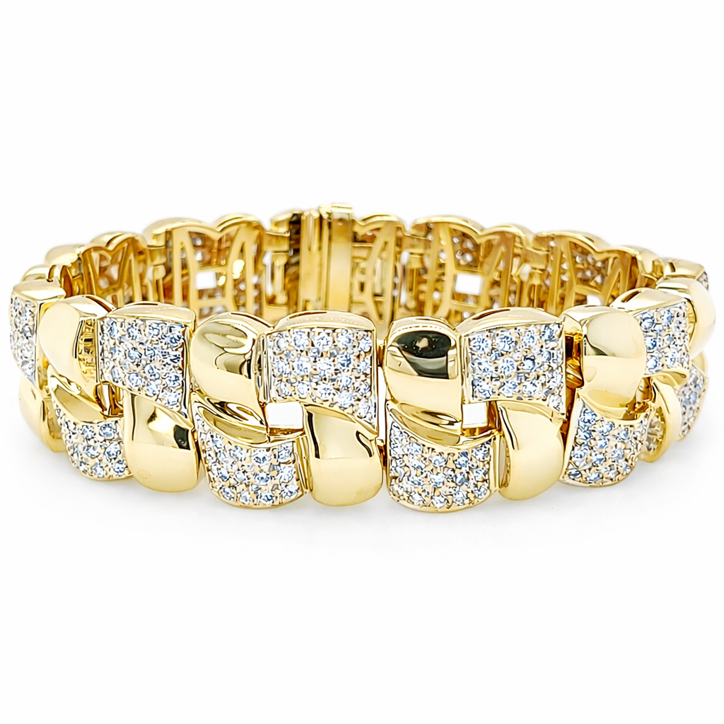 14K YELLOW GOLD 7CTW DIAMOND STUNNING BASKET WEAVE DESIGN LADIES BRACELET