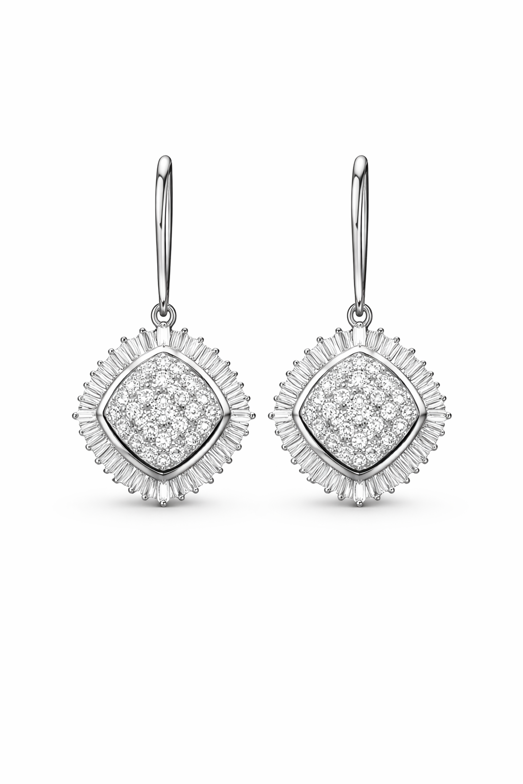 14K WHITE GOLD .95CTW BAGUETTE HALO PAVE SET SUNFLOWER STUDS EARRINGS