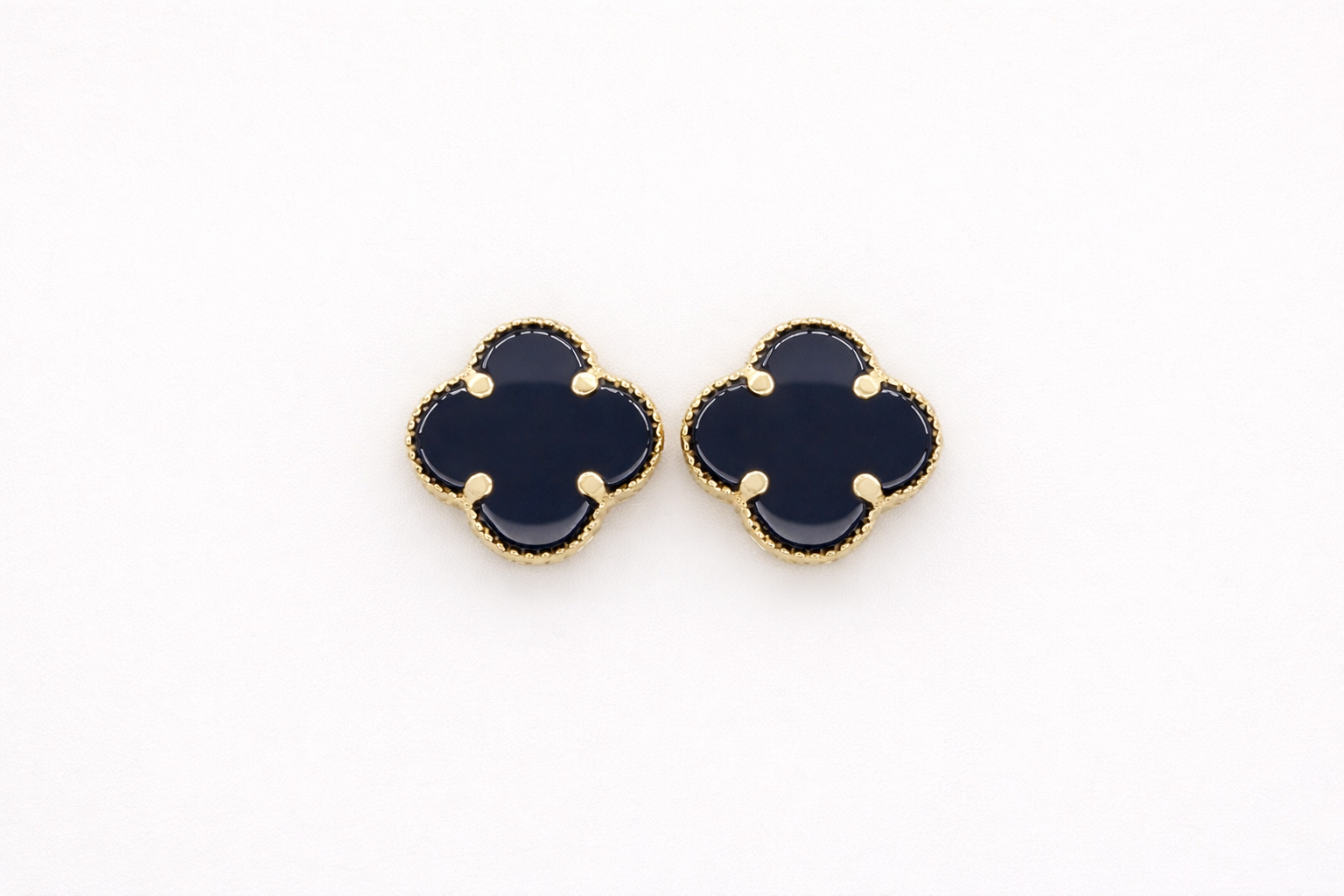 14K YELLOW GOLD 12MMM BLACK ONYX CLOVER STUDS