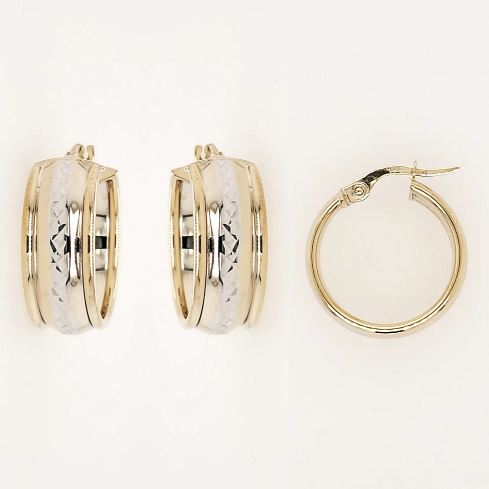 14K TWO TONE 0.80" 7.25MM HIGH POLISH DIAMOND CUT HOOPS