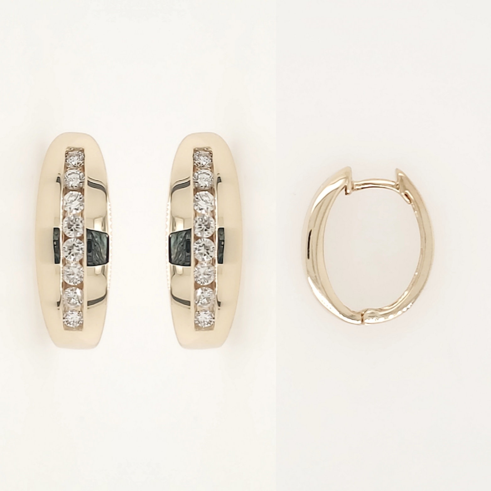 14K YELLOW GOLD .60CTW DIAMOND 0.80" THICK CHANEL SET OVAL SMALL HOOPS