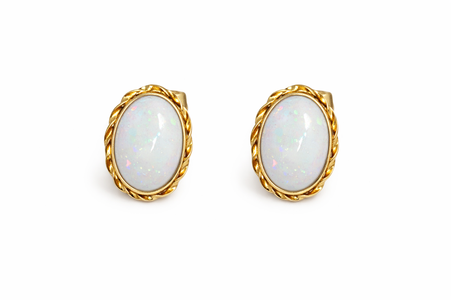 31549 14K YELLOW GOLD OVAL OPAL STUDS