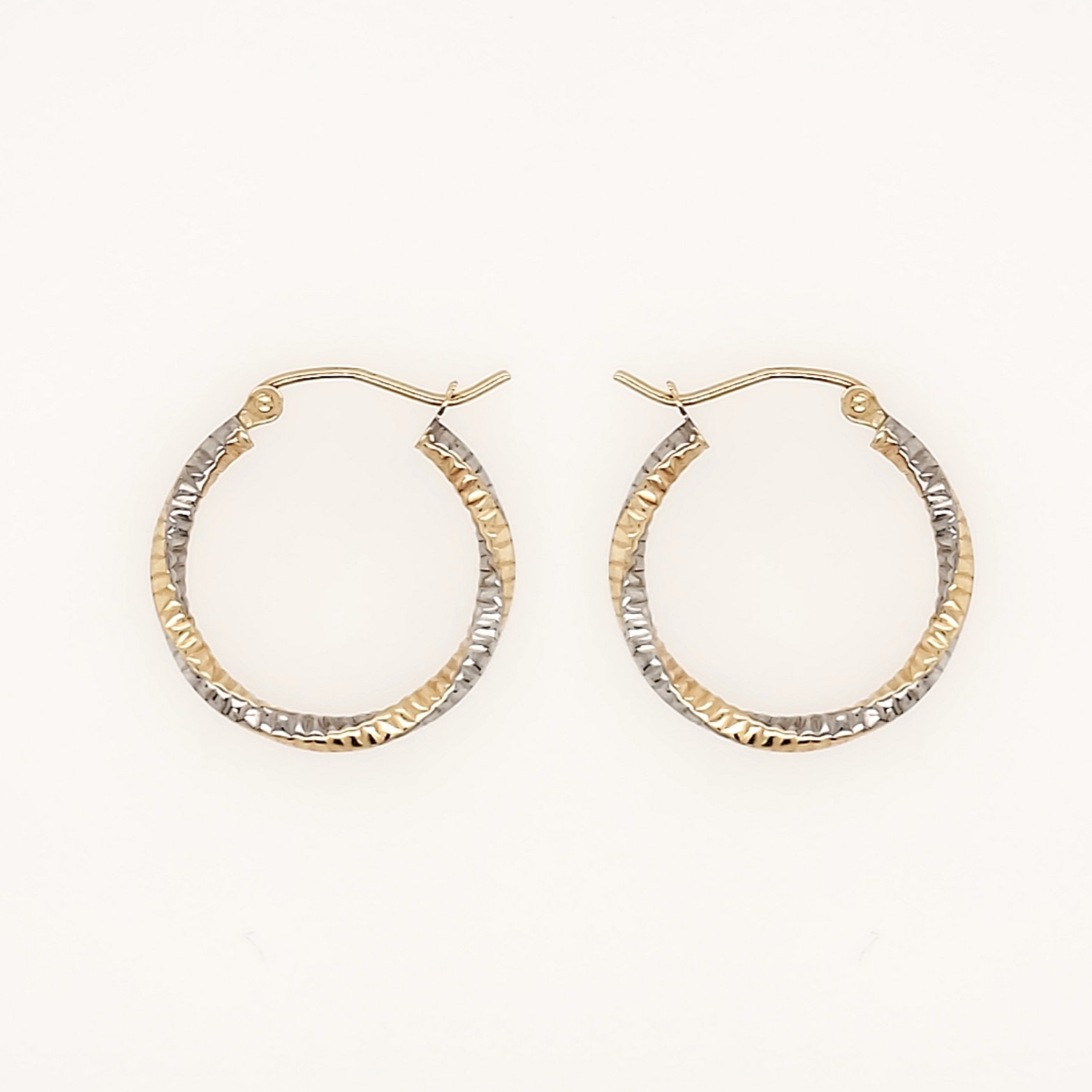 14K TWO TONE 0.85" 2.25MM TWISTED LINED HOOPS
