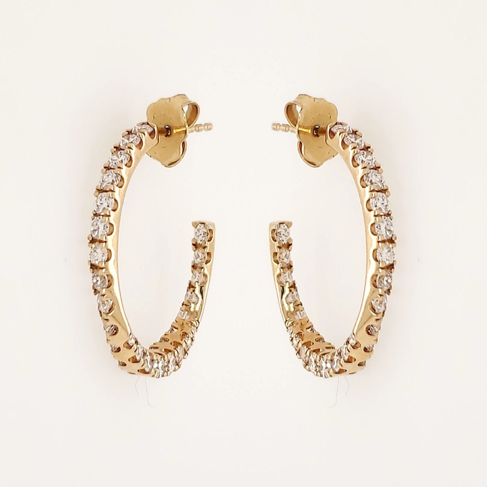 14K YELLOW GOLD 1.50CTW LAB GROWN DIAMOND TWIST INSIDE OUT OVAL PUSH BACK EARRINGS