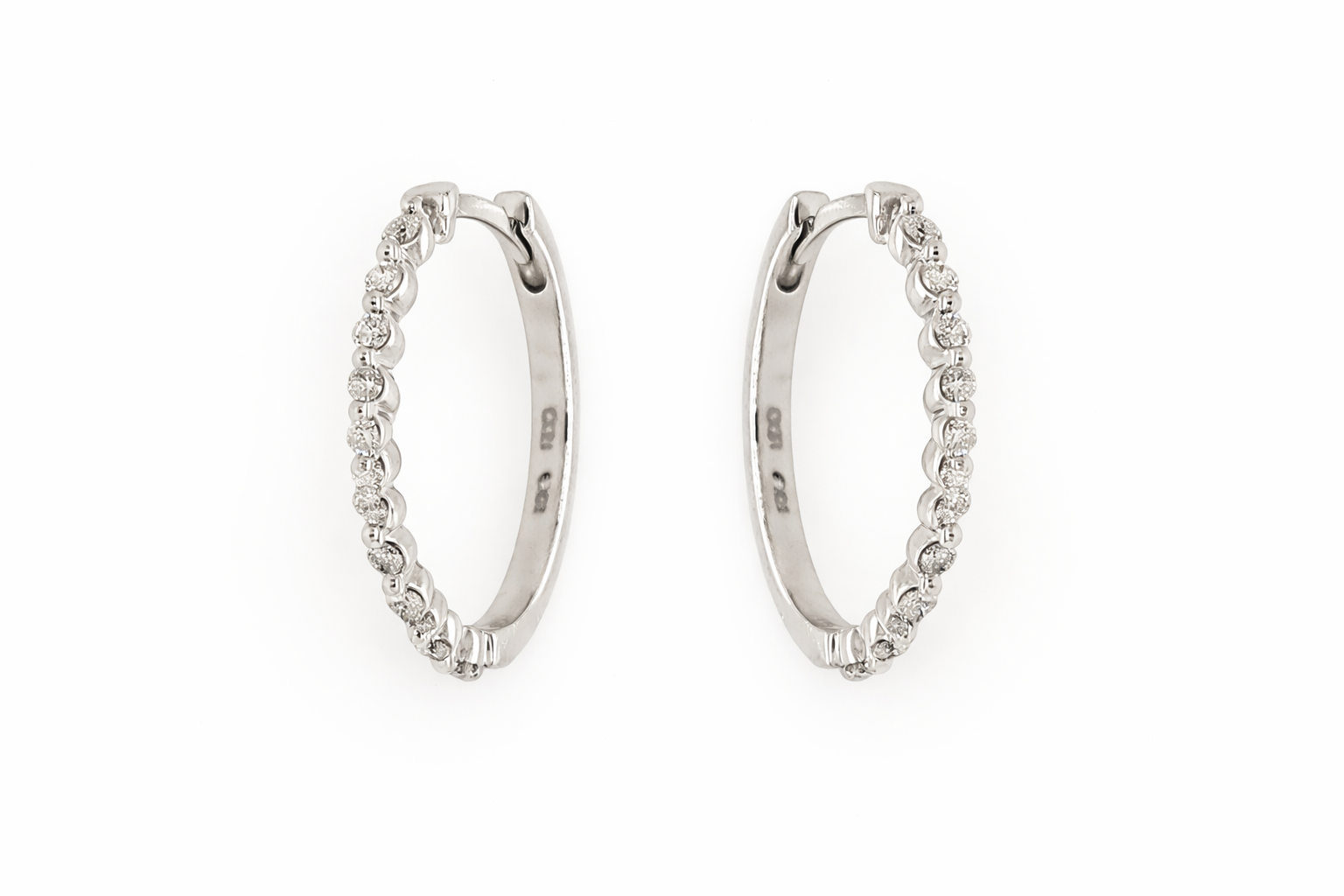 10K WHITE GOLD .25CTW DIAMOND SHRAED PRONG OVAL HUGGIES