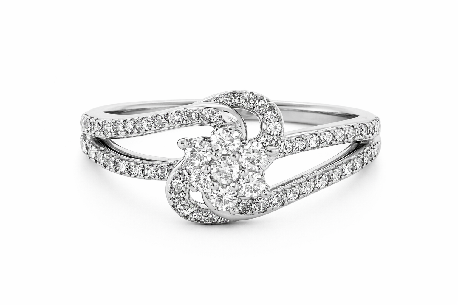 14K. WHITE GOLD DIAMOND .50CT FLORAL CLUSTER RING