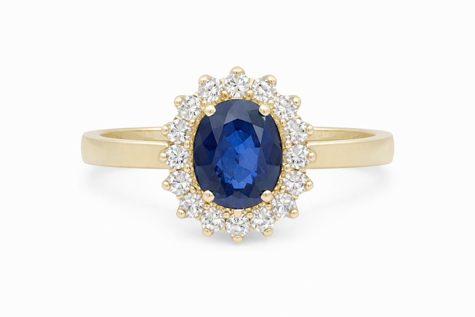 14K YELLOW GOLD .50CTW DIAMOND OVAL SAPPHIRE FLOWER SHAPE LADIES RING