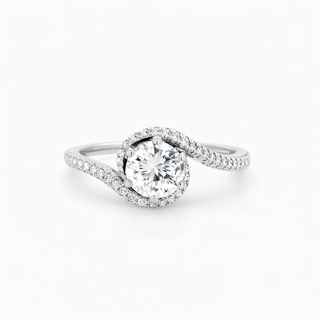 475020 14K WHITE GOLD .25CT DIAMOND HALO WITH .74CT ROUND DIAMOND "D SI1" GIA CERT.