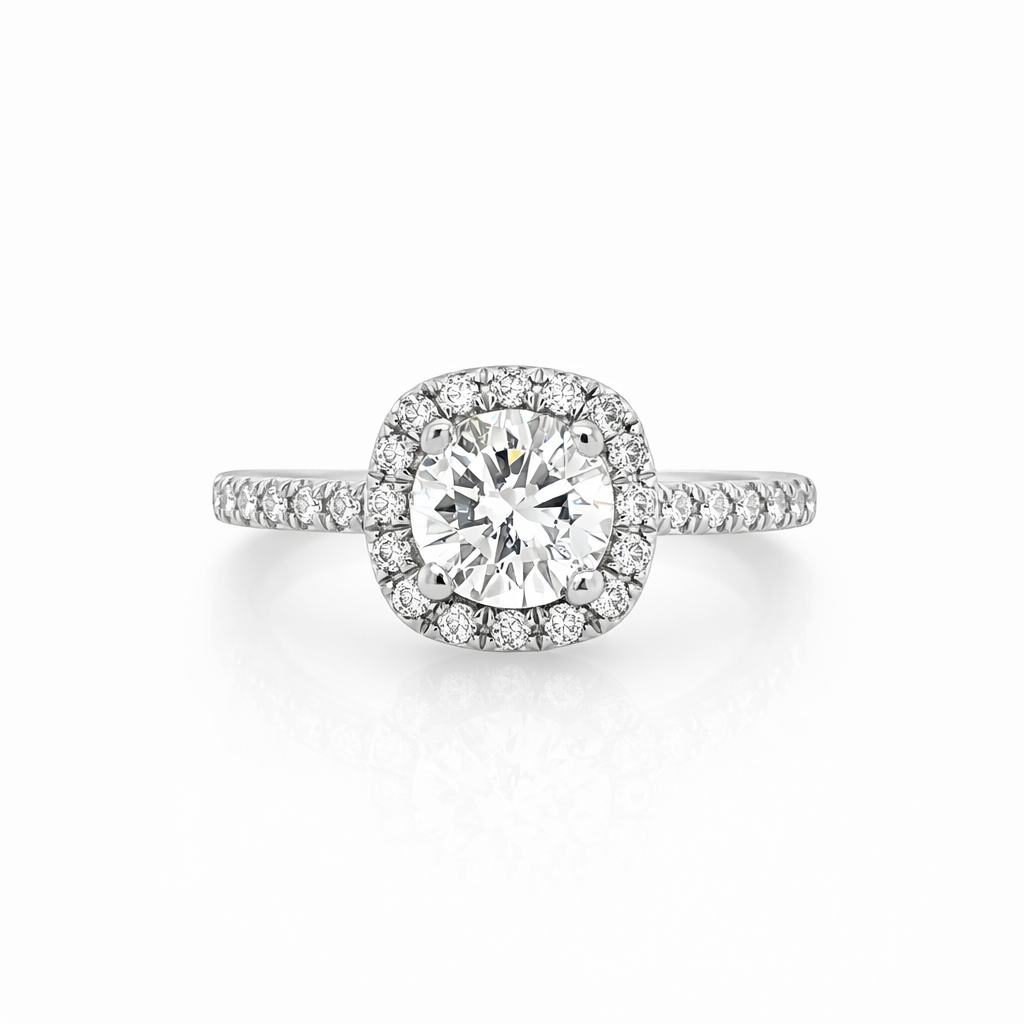 475026 14K WHITE GOLD 1.01CT J COLOR VS1 CENTER DIAMOND HALO ENGAGEMENT RING