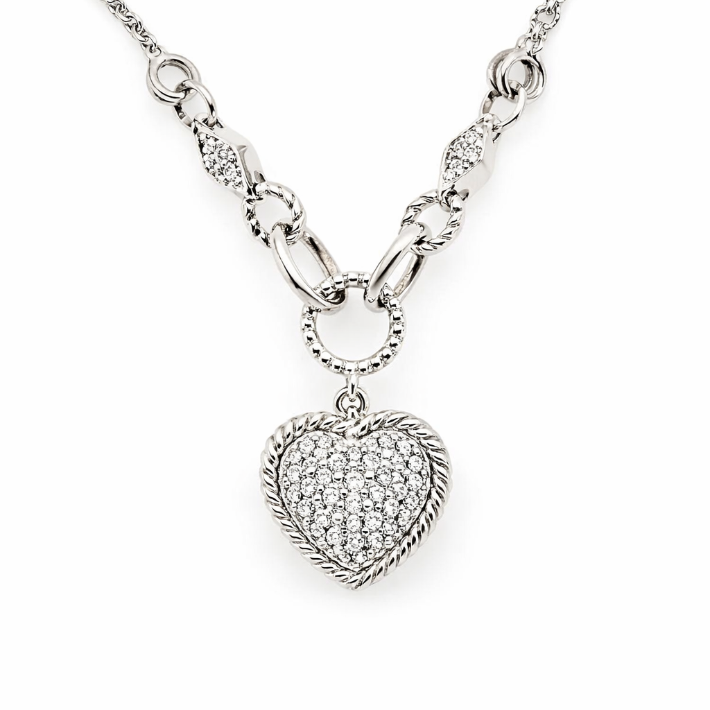 14K WHITE GOLD .75CTW DIAMOND HEART ROPE ARUND DOUBLE CHAIN NECKPIECE