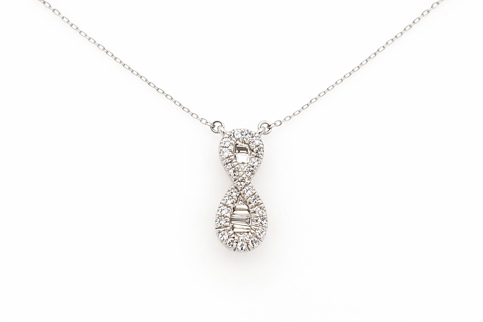 10K WHITE GOLD .18CTW DIAMOND BAGUETTE PETITE INFINITY NECKLACE