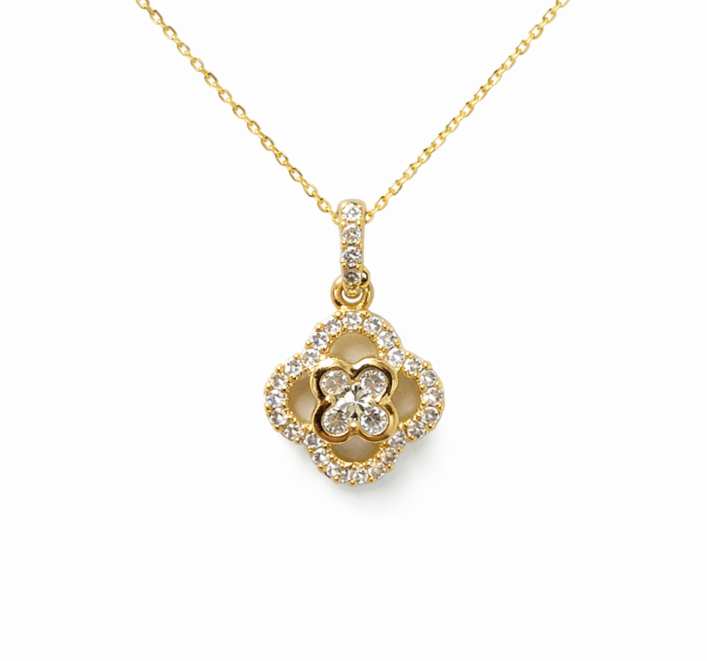 10K YELLOW GOLD .30CTW DIAMOND CUT OUT CLOVER PENDANT NECKLACE
