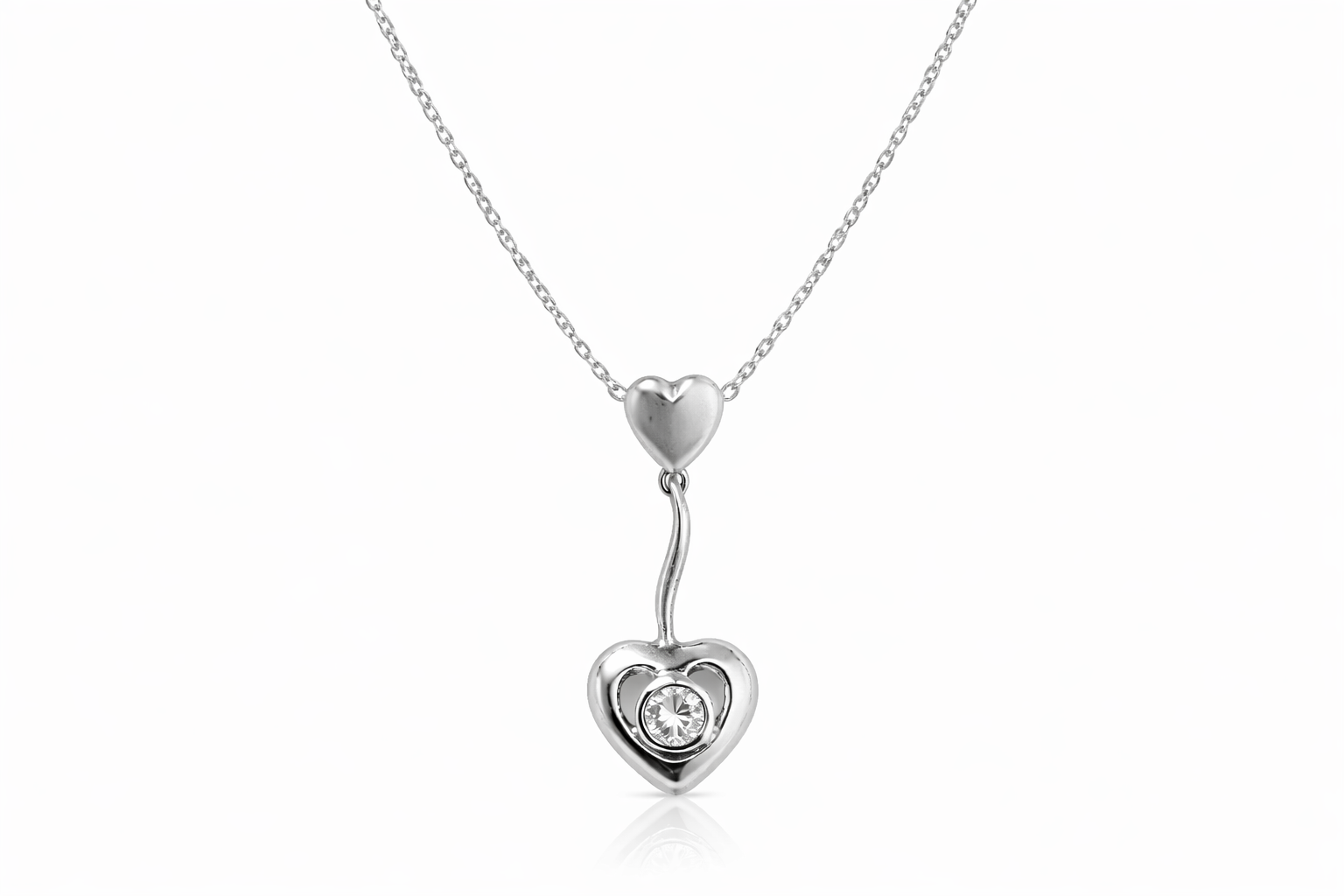 14K WHITE GOLD DIAMOND PETITE DOUBLE HEART DROP STYLE SLIDE PENDANT NECKLACE