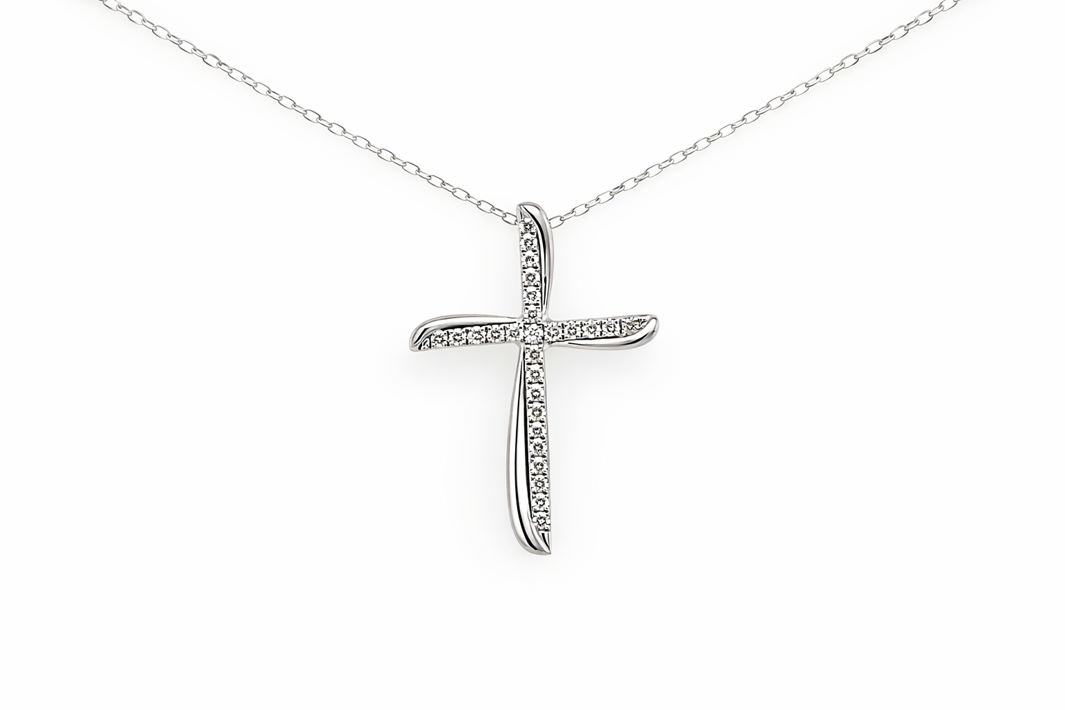 10K WHITE GOLD .15CTW DIAMOND HIGH POLISH SLIDE CROSS PENDANT NECKLACE