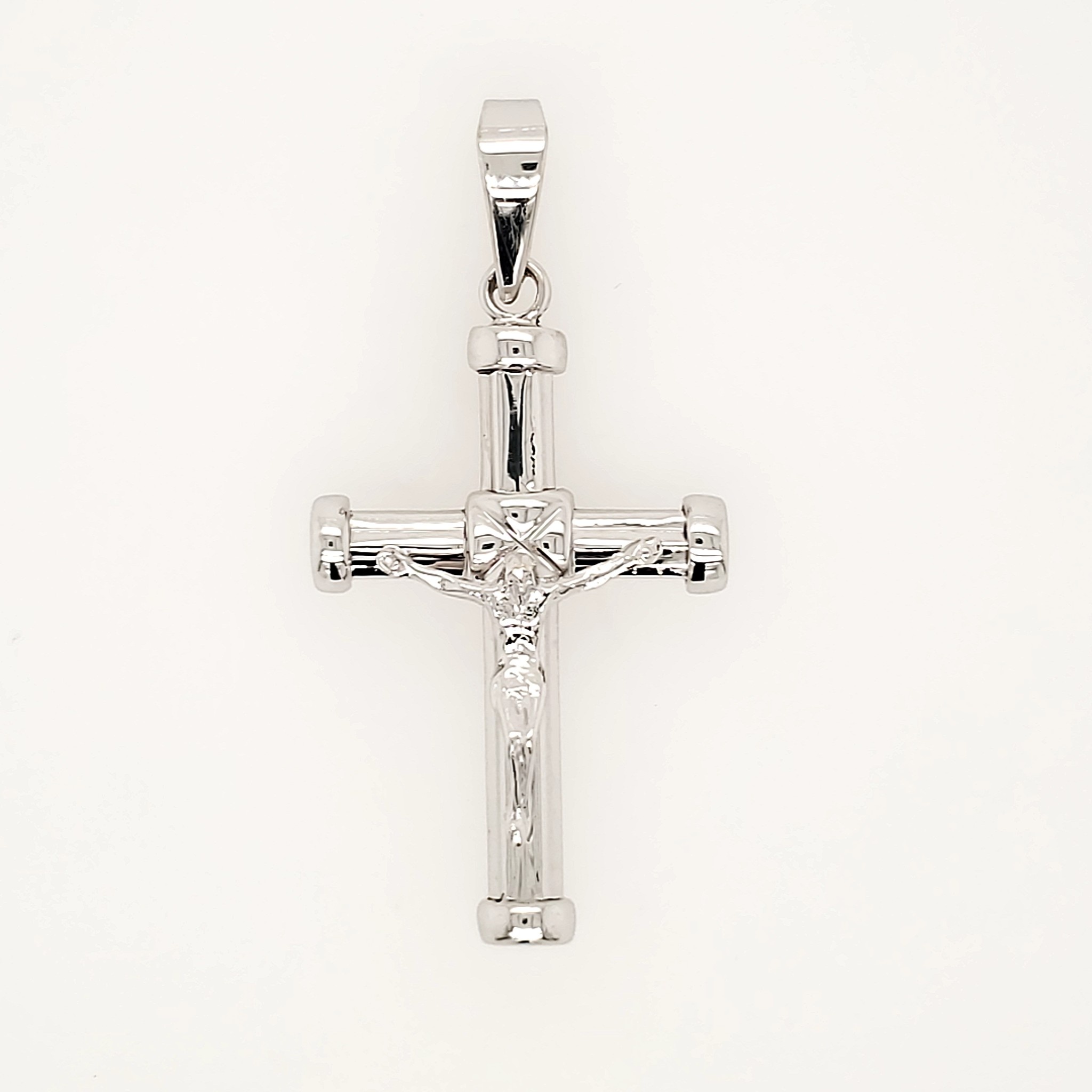14K WHITE GOLD 1.85" HIGH POLISH TUBE CAPPED ENDS CRUCIFIX
