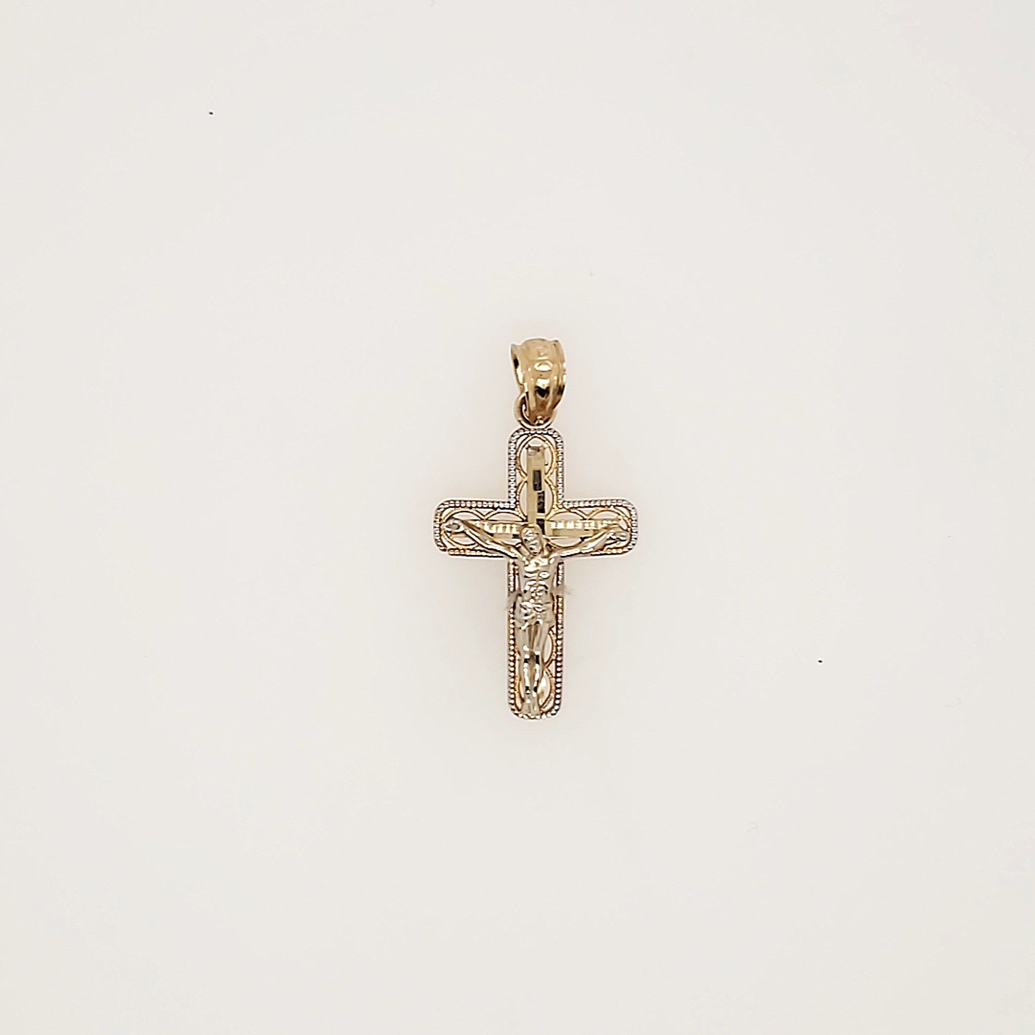 14K TWO TONE 1" DIAMOND CUT MILGRAIN EDGES SMALL CRUCIFIX