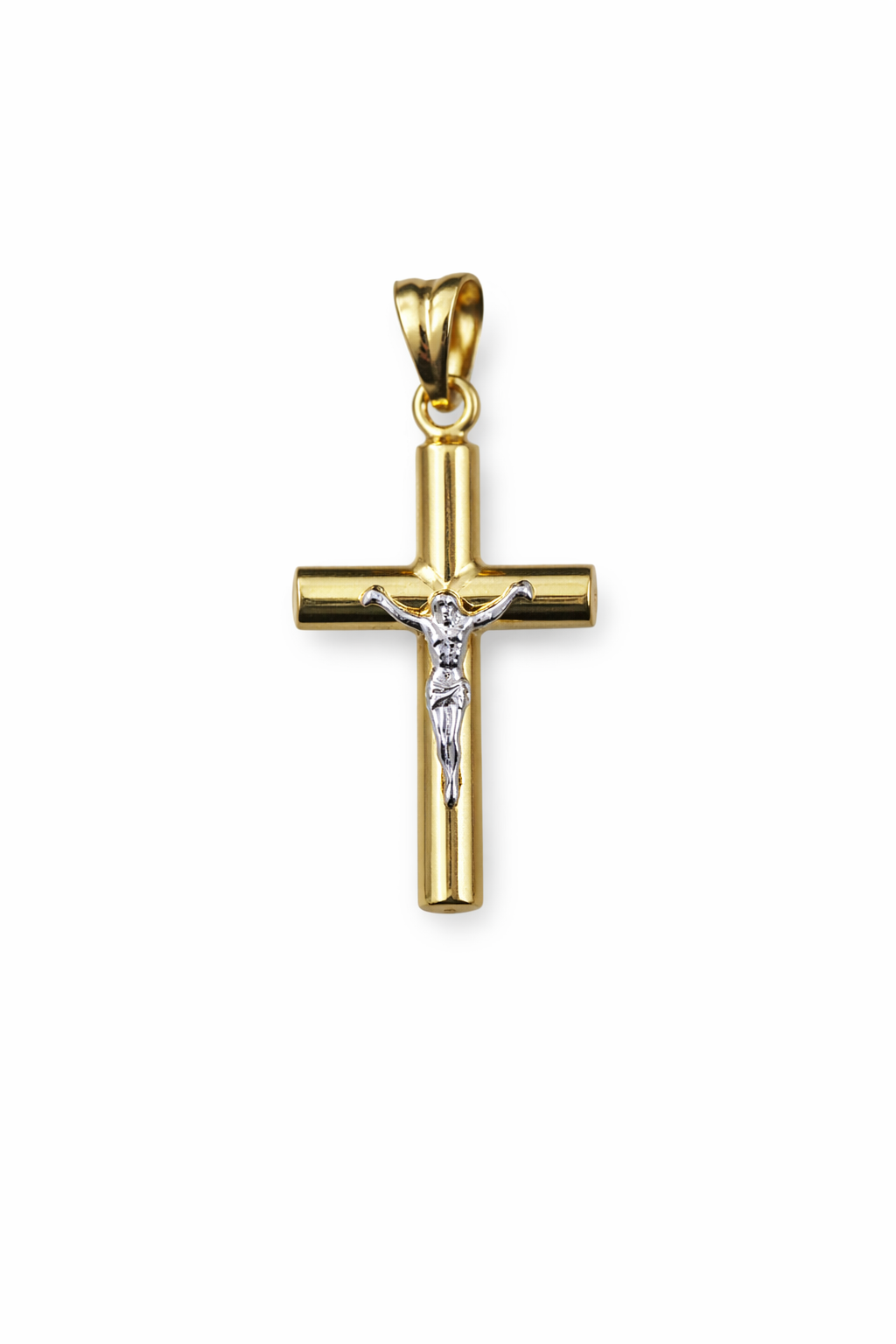 14K TWO TONE 1.30" TUBE STYLE CRUCIFIX CHARM