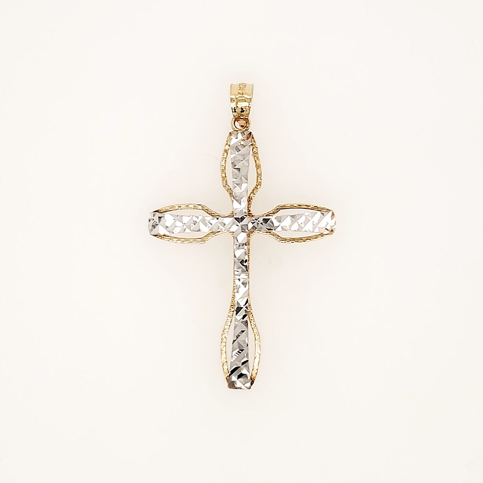 14K TWO TONE 1.5" DIAMOND CUT/ CUT OUT CROSS