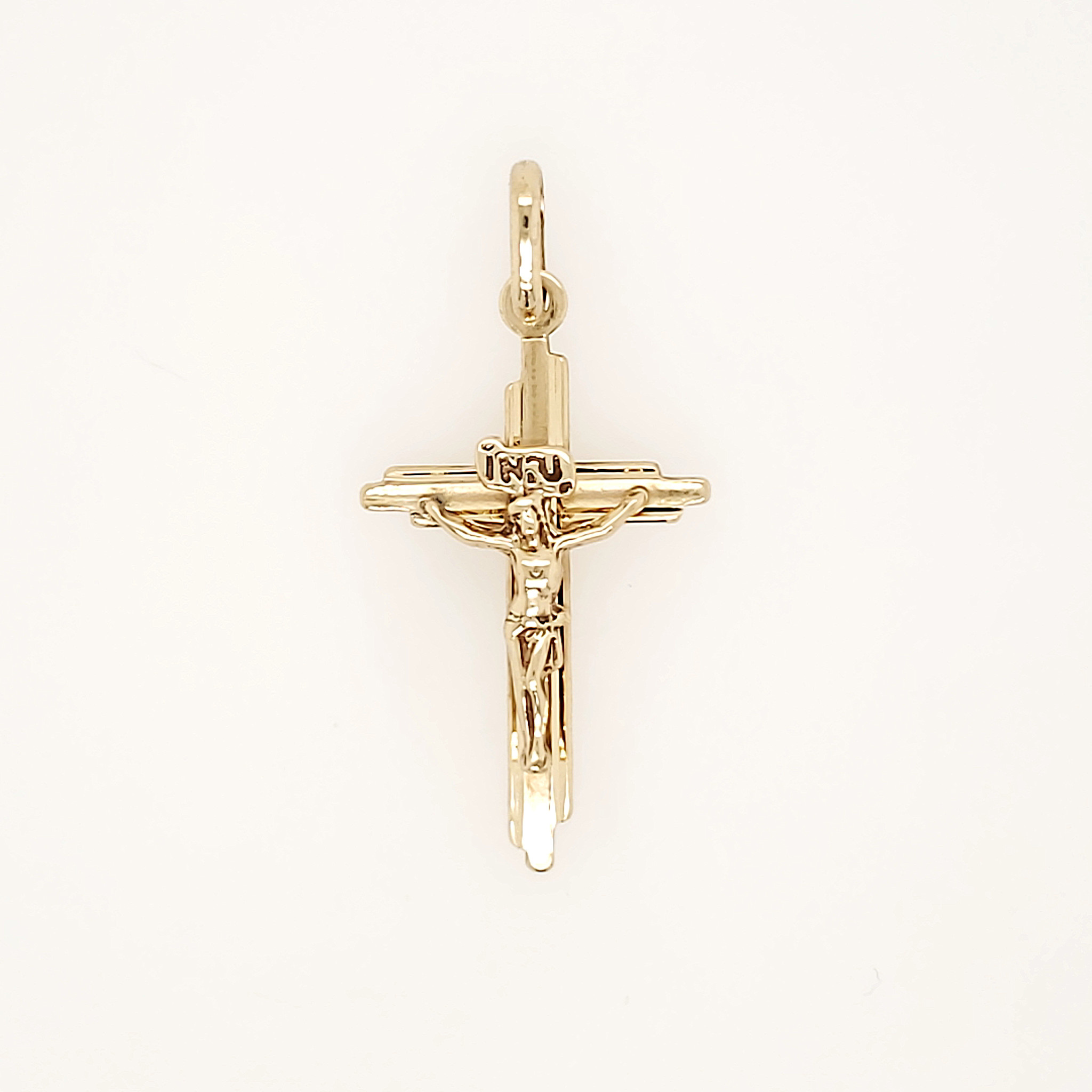 14K YELLOW GOLD 1.55" HIGH POLISH INRI CRUCIFIX
