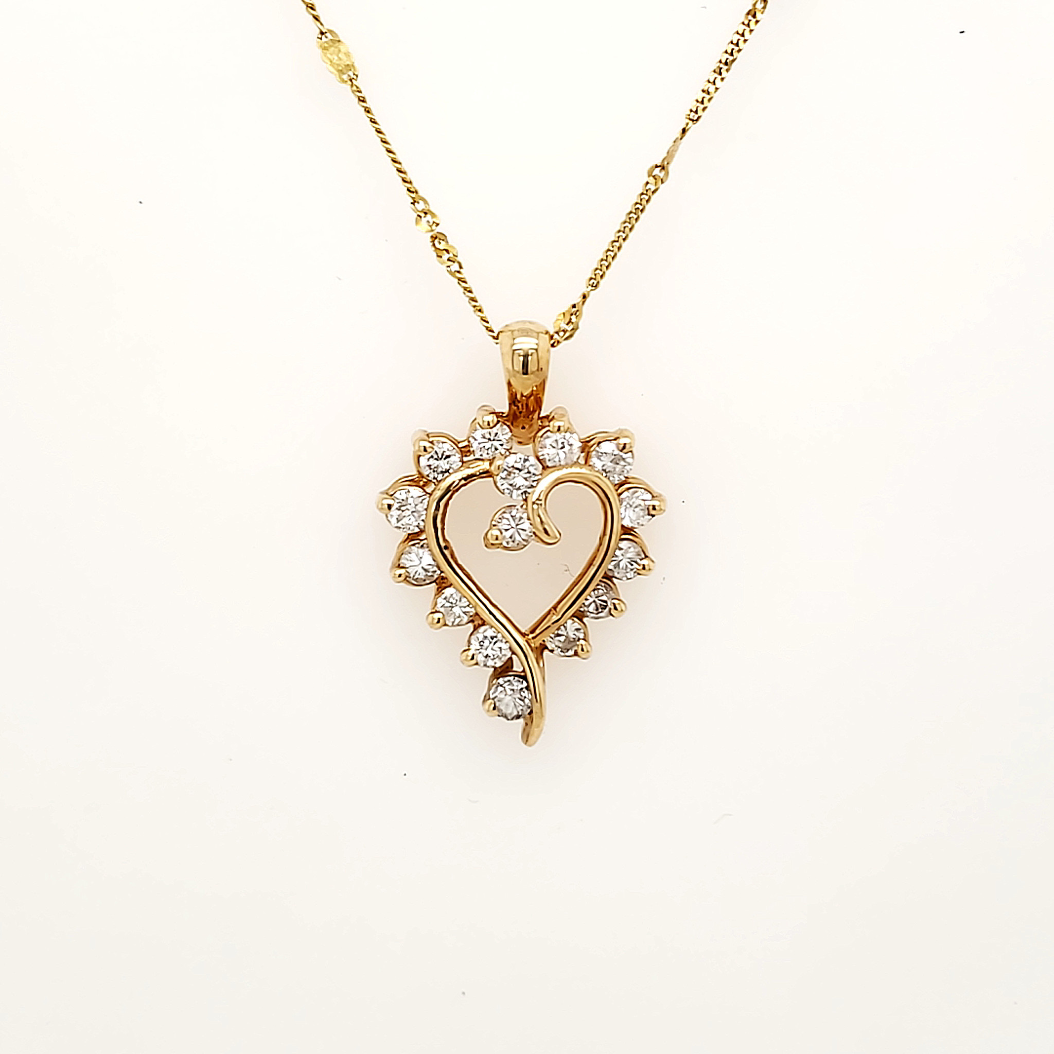 77712 14K YELLOW GOLD .75CT DIAMOND OPEN HEART PENDANT NECKLACE