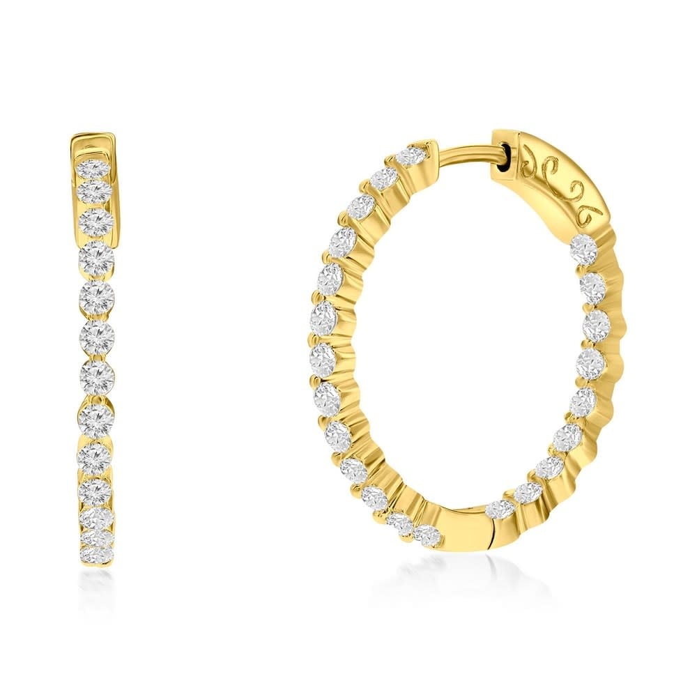 STERLING SILVER GOLD PLATED 25MM CUBIC ZIRCONIA INSIDE OUT HOOPS