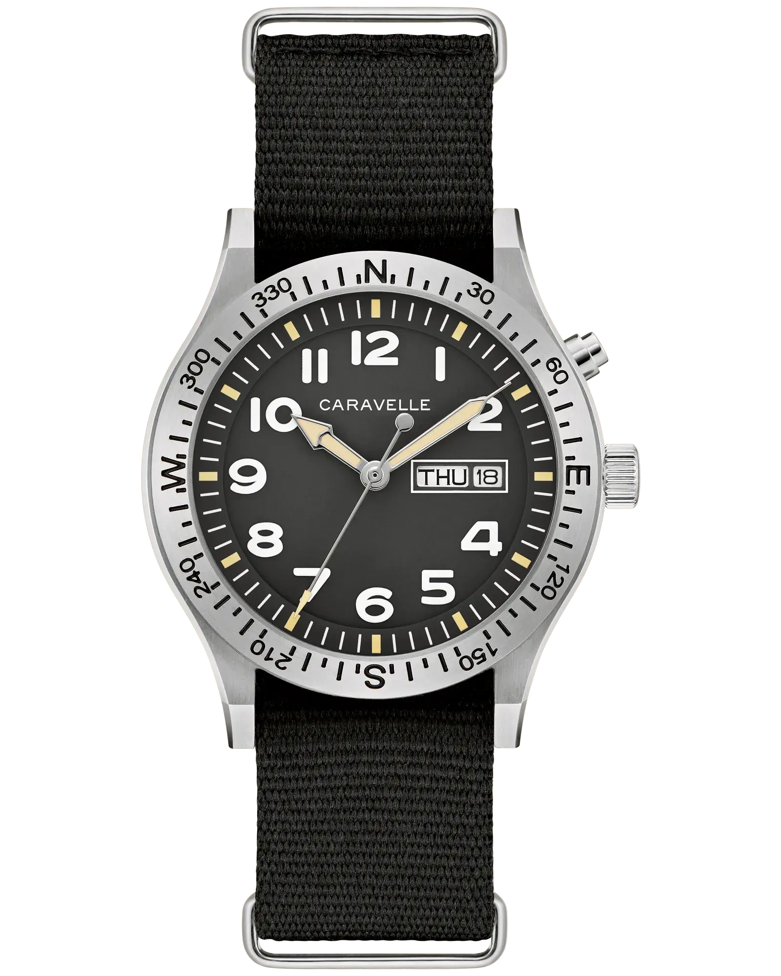 CARAVELLE STAINLESS STEEL CASE LIGHT UP DIAL ADJUSTABLE STRAP BAND MEN'S WATCH